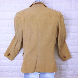-- Unmarked unbranded corduroy, Women's - Small (6/8), two outer Pockets with flaps, tailored Lined Fitted, classic notched rounded 3" lapel, leather 3-button closure, gathered long sleeves 2-buttons cuff, easy care unknown cotton? blend? in neutral shades of beige tan.