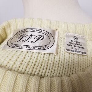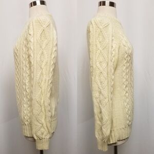 Vintage 70s Cream Cable Knit Acrylic Greek Fisherman Pullover Sweater Woman's Md