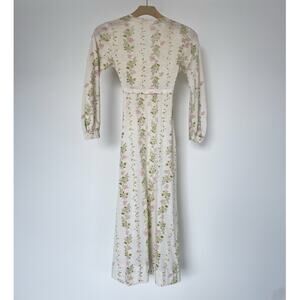 Vintage 70s Cream Jersey Floral Wrap Dress / Sz S / Neutral Maxi / Boho Hippie