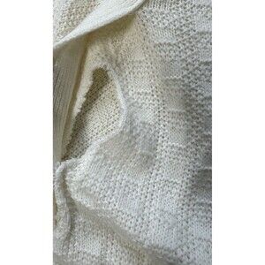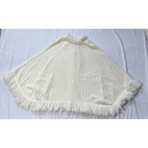 Vintage 70s Off White/Cream Knit Embroidered Boho Poncho Cape with Collar One Size. The tag is faded, I cannot fully make out the brand.