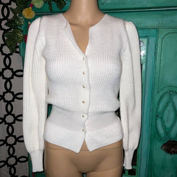 Vintage 70s Cream Retro Sweater with Pearl Buttons | Ivory Wooden Nickels - Medium