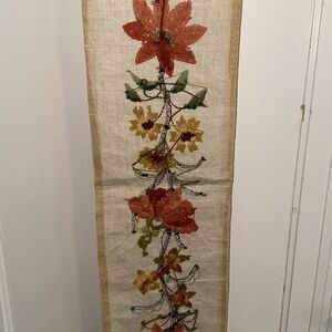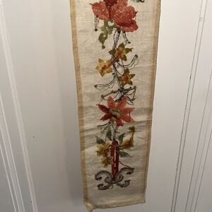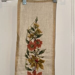 Vintage 70s Crewel Embroidery on Fine Linen Tapestry Bell Pull