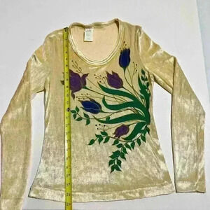 Tags: Vintage, Crushed Velvet, Metallic, Floral, Painterly, Tulips, Long Sleeve, Garden, Disco, Size Small