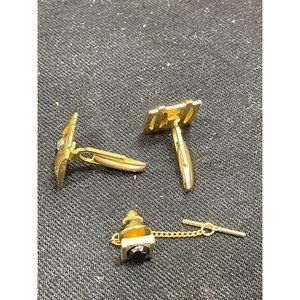 Vintage 70's Cuff Link Set With Matching Tie Clip Pin