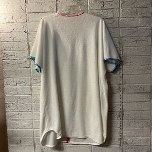 Vintage 70s Cypress White Terry Zip Flower Embroider Housecoat Large