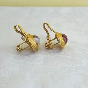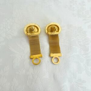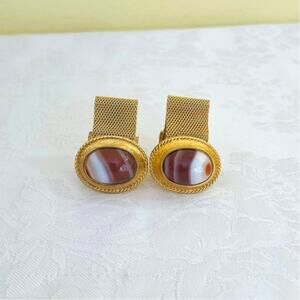 Vintage 1970s DANTE Gold Tone Oval Banded Agate Cufflinks, Cabochon, Swag.  Over the cuff mesh design.  In overall very good vintage condition.  Please see pictures for condition and size reference.