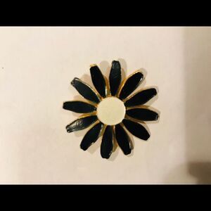 Vintage 70s Daisy Brooch Black and White Jewelry