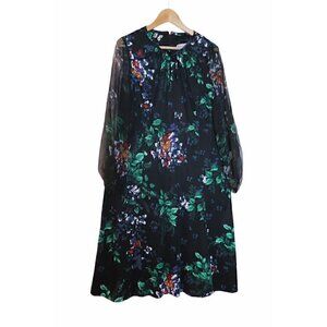 Vintage 70s Damon DD Black Floral Sheer Sleeves Hostess Dress. Excellent condition. Polyester. 41” length, 40”-44” bust, 40” waist, 44” hip.