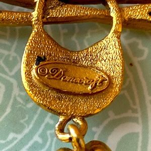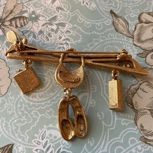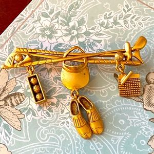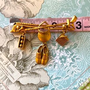 EUC excellent for era Gold Toned Vintage Signed Danecraft GOLF CLUBS & Charms Satin Finish Gold Dangling Broach