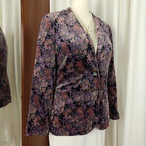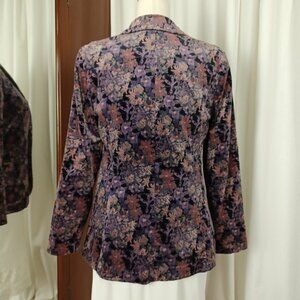 Vintage 70s Dark Floral Cotton Velvet Blazer