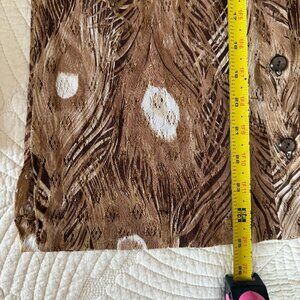 Vintage 70s Dart Collar Sheer Beige Peacock Feather Long Sleeve Blouse Size S