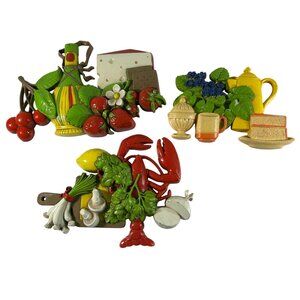 Vintage 70s Dart Industries Kitchen Wall Hangings 3D Mushrooms Lobster Onions