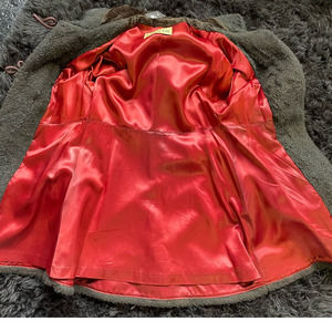 • Condition notes: no rips, snags, or stains. Missing bottom buttons, fur on trim shows some wear. Top braided loop untwisted a bit. See pics