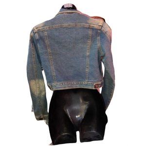 This is definitely a must-have!! It's a cropped denim jacket with a little acid-washed look and some stretch, from the 70s and '70s, and it's in immaculate shape!