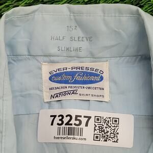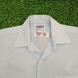 Vintage 70s Disco MOD Button Shirt XL 23x32 Powder-Blue