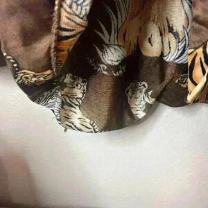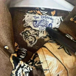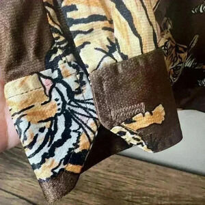 Vintage 70s Disco Mod Tiger All Over Art Cat Print Miami Brown Button Shirt