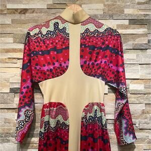 Vintage 70s Disco Queen Maxi Dress M | Cutout Waist, Psychedelic Mod Print