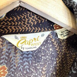 Vintage 70's Disco Shirt Mens Medium Brown Floral Polyester Retro Club Hipster