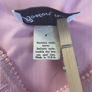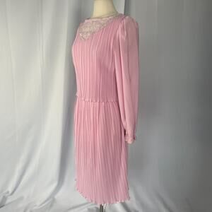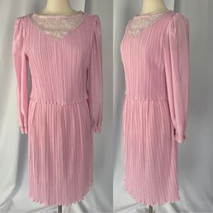 Vintage 70s Dress Size 4 Light Pink Pleated Puff Sleeve Lace Coqutte Romantic