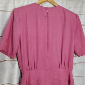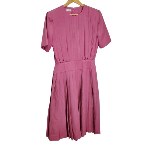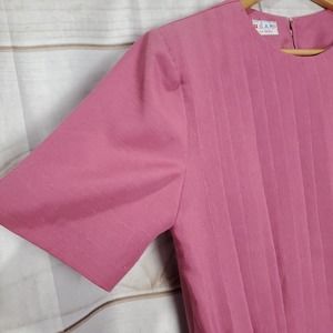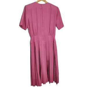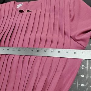Vintage 70s Dress Womens Large Pink Pleated A Line Midi Modest Retro Barbie
