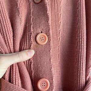 Vintage 70s Duet Button Front-tie Waist Cardigan Mauvey Pink - L