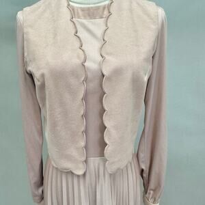 Vintage 70s Dusty Rose Midi Dress with Scalloped Vest Pleated Skirt Size 12