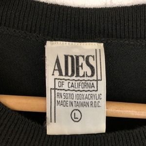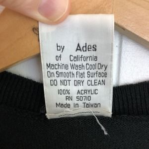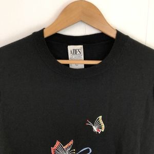 Vintage 70s Ades of California Acrylic Sweater Embroidered Flowers Black Small