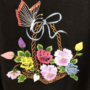 Vintage 70s Embroidered Spring Flower Basket Sweater Small by Ades of California