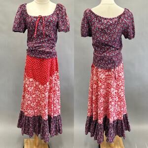 Vintage 70s Fadoosie western peasant style skirt and top set size 7 square dance