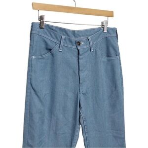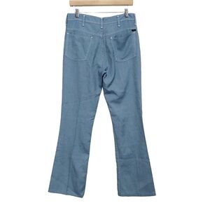Amazing vintage 1970’s ultra high waisted flare jeans by Farah’s Time Out West line. True blue light-medium denim. This is a comfy, lightweight denim but it doesn’t provide any stretch. Zip fly and button closure. Front and back pockets. Small Farah logo above back pocket. Made in the USA. Only flaw I can find is a tiny area on back pocket that looks like it may have been a hole that was repaired, see last pic. There is no size tag so please use measurements to ensure a good fit. These fit like an 8 (30” waist).