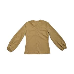Vintage 70s Fenton Puff Sleeve Blouse High Neck Tan Brown Back Zip Single Stitch