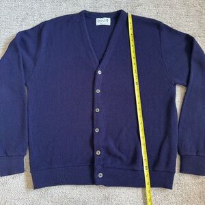 Navy button up cardigan sweater, grandpa / Mr Roger’s vibes