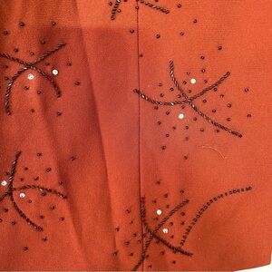 Burnt orange solid with all over beads and sequins in celebratory firework burst shapes
