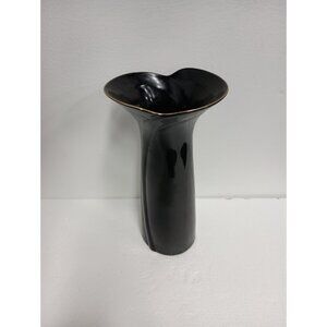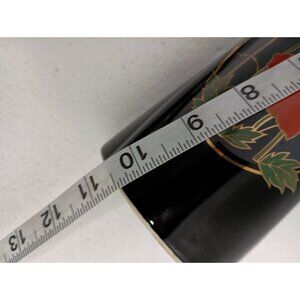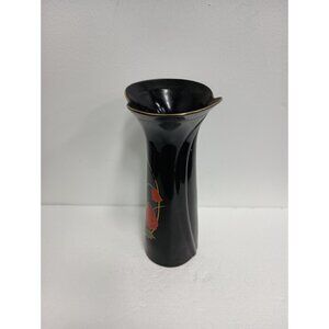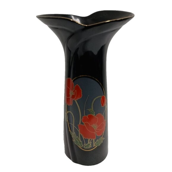 Vintage 70s Fine China Black Elegance Asian Vase With Red Poppy Flowers Japan
