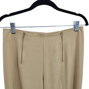 Vintage 70's Flare Pants 6T Tall Long Tan Mid Rise Zipper Detail Front Split Hem