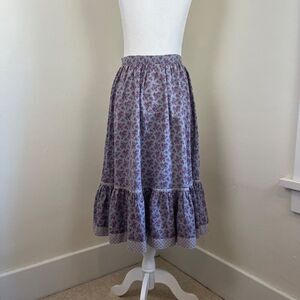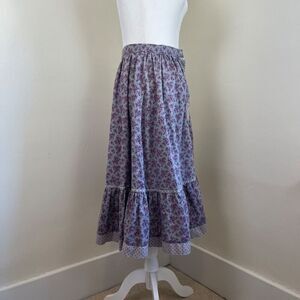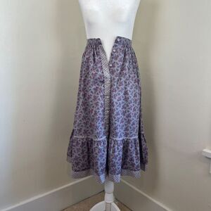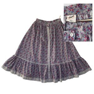 Vintage 70s Floral Button Ruffle Midi Skirt 5 XS Purple Prairie Cottage Tiered