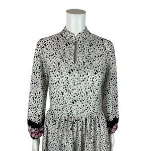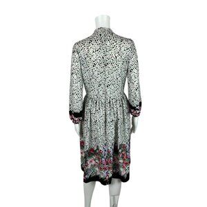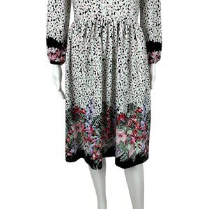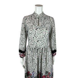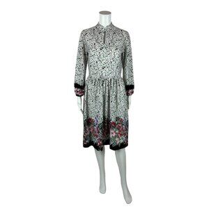 Vintage 70s Floral Dress Women's Small Border Print Pink Keyhole Neckline Sheath