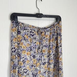 Soft and dreamy floral maxi skirt with a vintage 70s-inspired print in lavender, butter yellow, and ivory. Made from a lightweight cotton-blend fabric with a comfortable elastic waistband and adjustable drawstring for the perfect fit. Flowing A-line silhouette makes it ideal for twirling through meadows, layering with lace camis, or styling with boots for a cottagecore or coquette vibe.