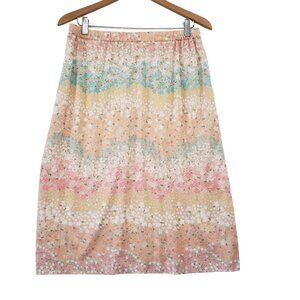 Vintage 70s Floral Midi Skirt Elastic Waist Lightweight Pastel Ombre Floral Boho