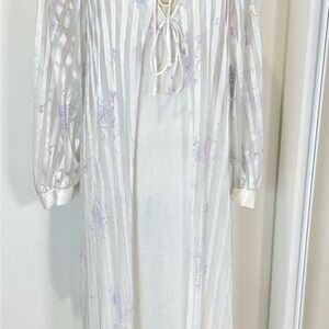 Vintage 70s Floral Peignoir Negligee Nightgown Robe Set Lingerie Milkmaid Satin