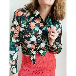 Vintage 70s Floral Print Button Up Blouse size S/M Fit Dagger Collar Statement