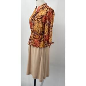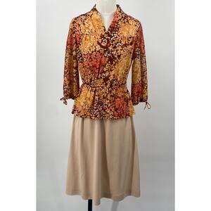 Keywords: vintage 70s peplum shirtdress floral patterned pattern seventies 70s nineteen seventies seventy 70s flower power whimsical flower feminine office vtg cinched waist lightweight dainty delicate twee seventies bohemian boho groovy blogger fave influencer fave vintage silhouette fairycore whimsy girly workwear office trendsetter timeless day dressing chic preppy effortless warm tones classic 60s sixties 1960s eighties 1980s 80s colorful 2fer