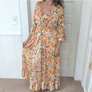 Vintage 70s Floral Retro Maxi Dress