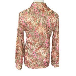 Vintage 70’s Floral Lightweight Button Down Top Tan Pink Green S