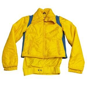 Vintage 70s Frostline Kit Ski Jacket XS Yellow Blue Nylon Ripstop Cropped Puffer