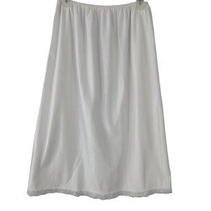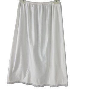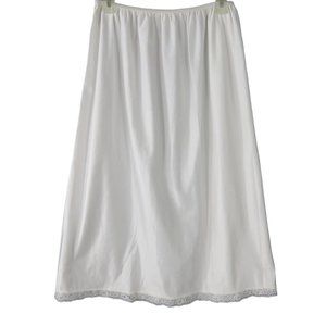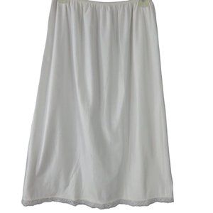 Vintage 70s Full Length White Nylon Half Slip Womens L Lace Hem USA Union Tag