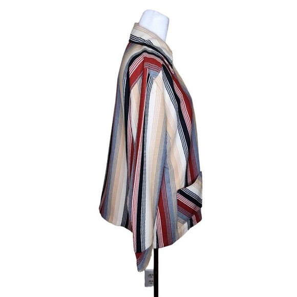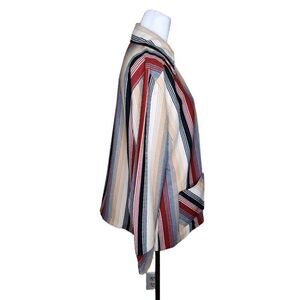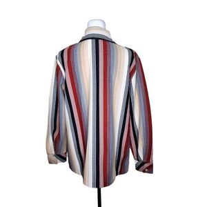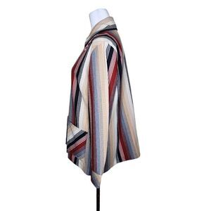 Vintage 70s Full Zip Cabana Jacket Womens Size XL Striped Dagger Collar Poly