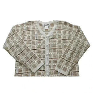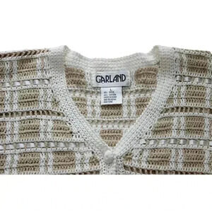 Vintage 70s Garland Women's Size L Ivory Cream Open Knit Button Cardigan Sweater