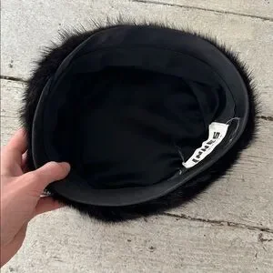 Vintage 70s Genuine Mink Caplet Pillbox Hat