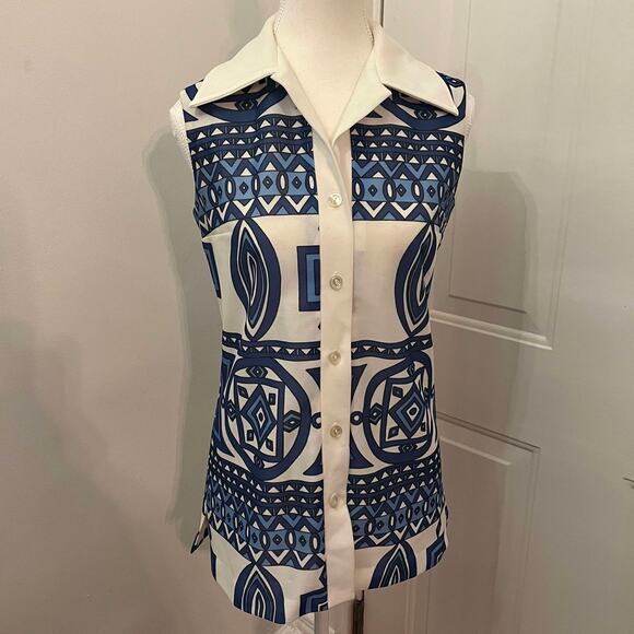 Vintage 70's George Gerring Blue and White Collared Button Down Tank Top Size S